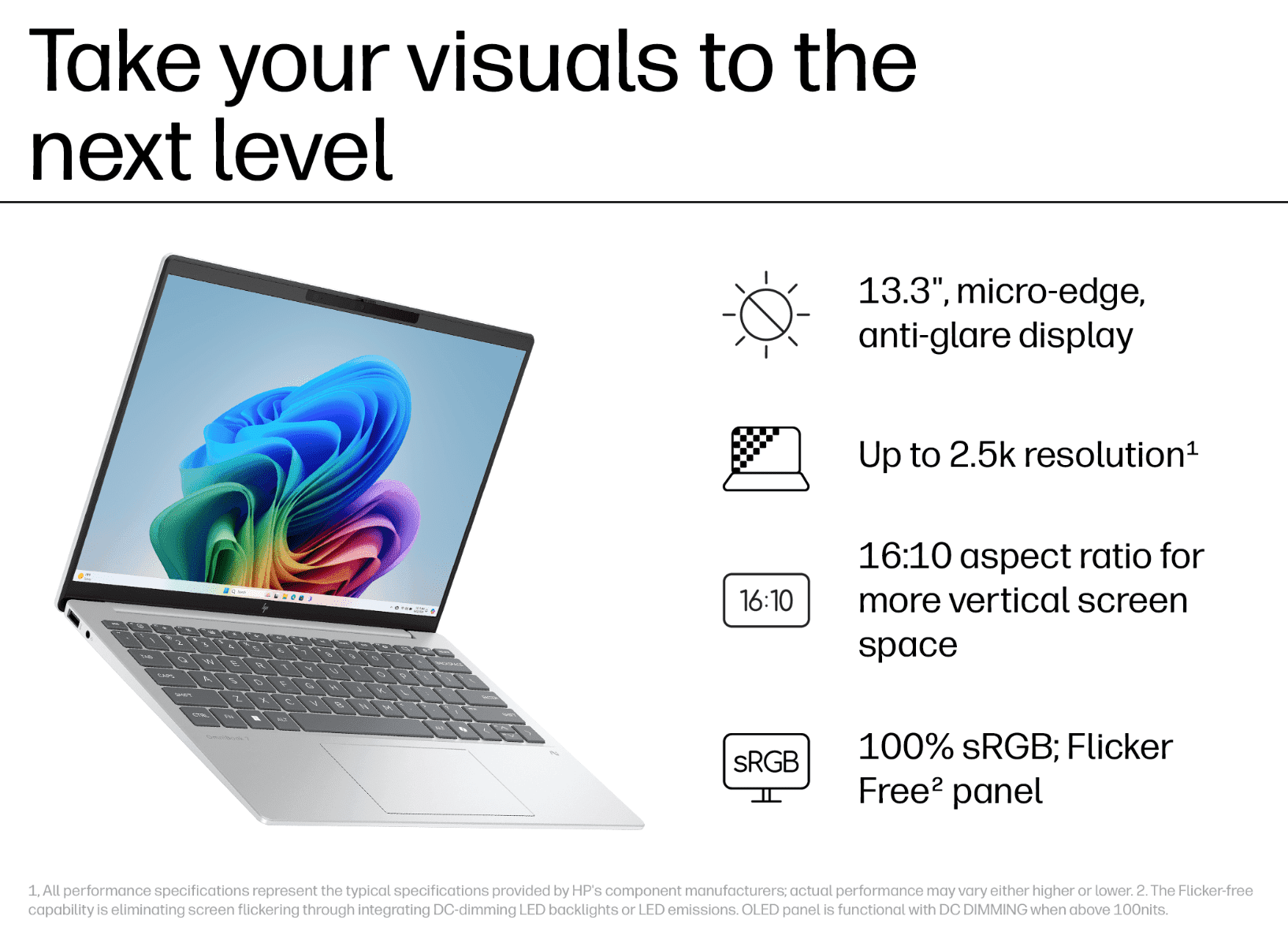 𝗗𝗶𝘀𝗽𝗹𝗮𝘆 : 13.3" diagonal, WQXGA (2560 x 1600), IPS, micro-edge, anti-glare, 400 nits, 100% sRGB