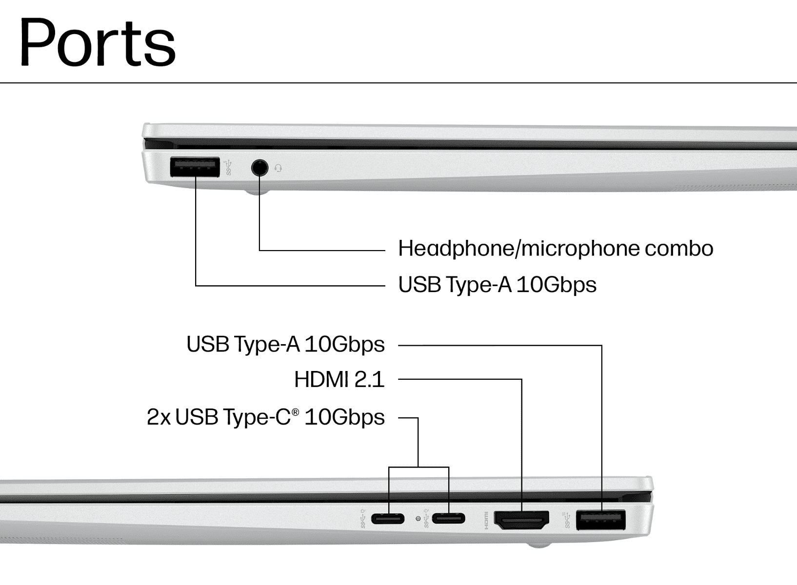 2x USB Type-C® 10Gbps signaling rate (USB Power Delivery, DisplayPort™ 2.1, HP Sleep and Charge)